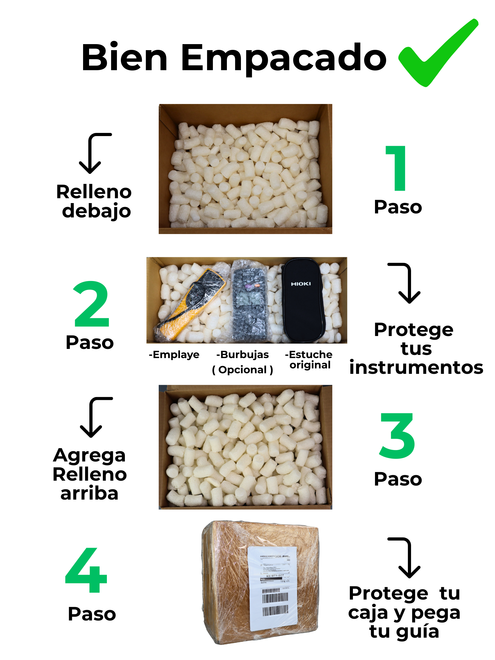 - Envolver con papel burbuja y/o peanuts como material amortiguador.