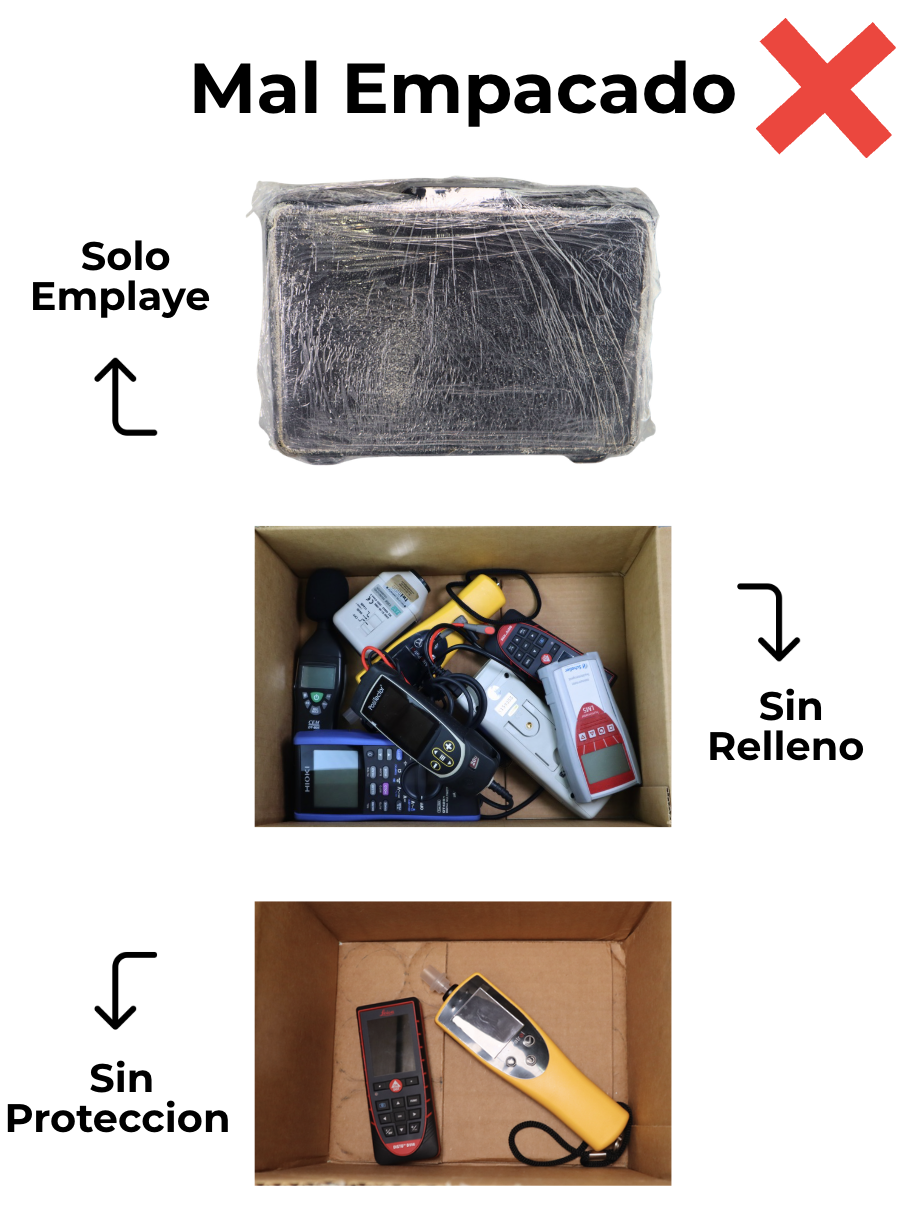 hacer responsable de equipos que llegan dañados por equipos mal empacados.