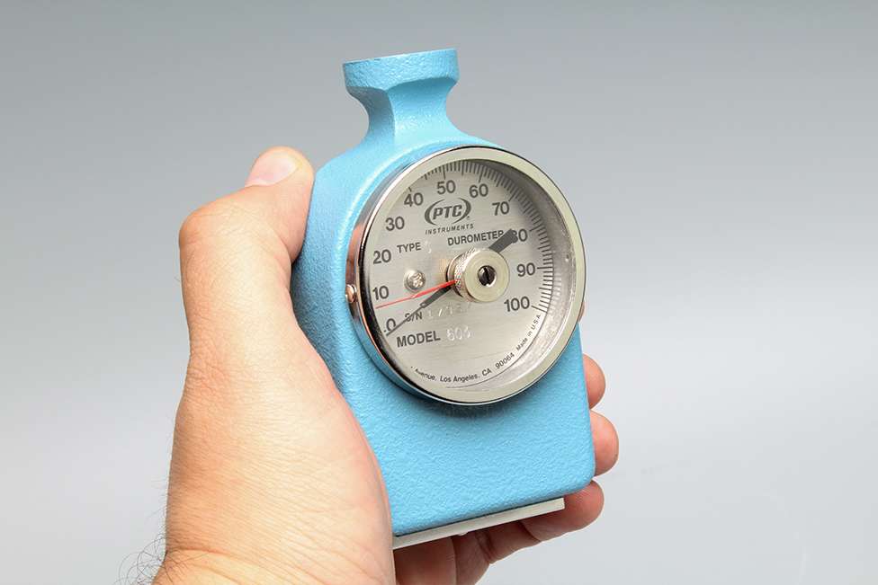 Durómetro modelo estilo clásico 603 Analog Asker C tiene una caratula de fácil lectura de 0 a 100 de línea y punto de 1/2 "x2 "base. Cumple con JIS K 7312 y SRIS 0101.