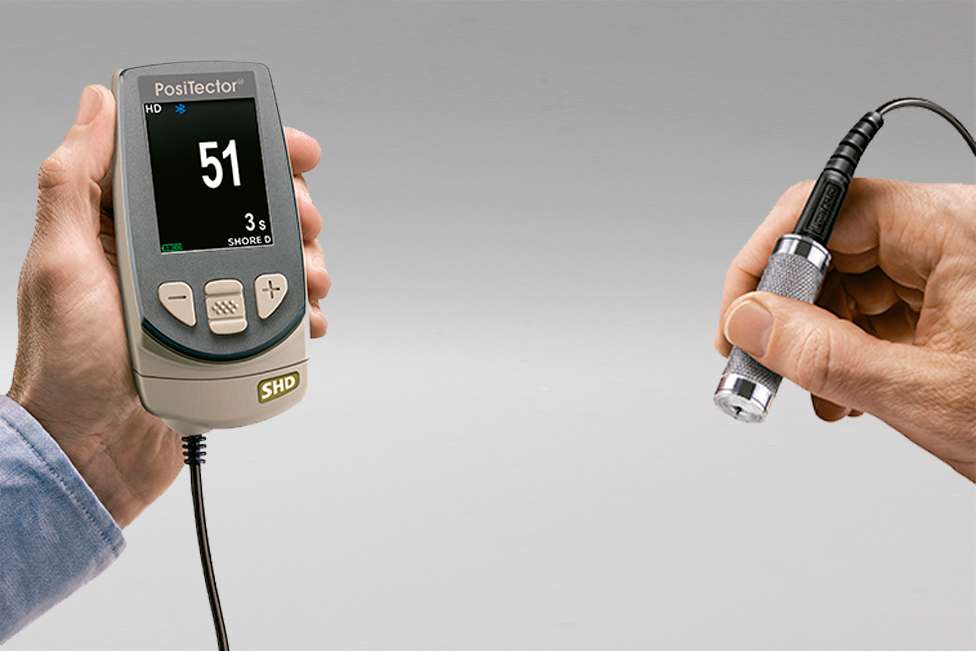 El durómetro de dureza Shore Shore de PosiTector es un instrumento electrónico de mano que mide la dureza de indentación de materiales no metálicos. Dos modelos de durómetro están disponibles para diferentes rangos de dureza - Shore A y Shore D.