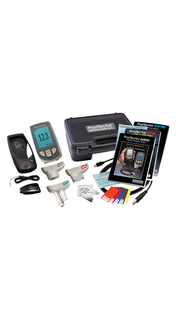 El juego de herramientas que habilita al inspector de recubrimientos de las herramientas mas efectivas para la inspeccion de recubrimientos en campo: Una consola PosiTector Estándar, una sonda PosiTector 6000 modelo "F" para la función de medidor de espesor de película seca sobre sustrato ferroso (sin cable), una sonda PosiTector DPM para la funcion de medicion de punto de rocio y condiciones ambientales y finalmente una sonda PosiTector SPG medidor de perfil de anclaje. Este paquete de equipos le permitirá al usuario medir los parámetros criticos antes durante y después del las aplicaciones de recubrimientos no-magnéticos aplicados en sustratos de Acero, fierro gris, etc.