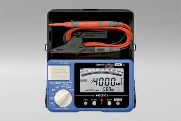 Los probadores de aislamiento o megaohmímetros Hioki cuentan con diseños todo en uno que incluyen estuches resistentes incorporados y compartimentos de almacenamiento de cables de prueba. El IR4057-50 y el IR4057-90 es un probador de resistencia de aislamiento digital de 50 V a 1000 V de rango 5 con gráfico de barras y ofrece funciones y características eficientes para ayudar a acortar el tiempo de trabajo asociado con las pruebas de aislamiento de campo. CAT III 600 V
