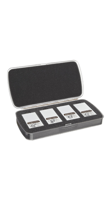 Estuche resitente de acrílico con 4 bloques de poliestireno con espesor graduado en sistema métrico e imperial.