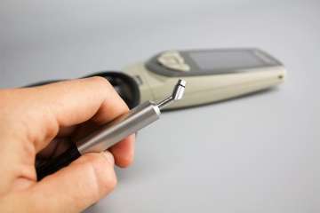 El medidor de espesor de película seca por método inductivo (magnético) de la serie PosiTector 6000 modelo ferroso con sonda F45S micro en angulo a 45 grados y con extension de cable podrá realizar mediciones precisas en lugares pequeños como moldes, varillas, rejillas, etc. Este qeuipo permite medir casi todos los recubrimientos comercialmente disponibles aplicados sobre sustratos ferrosos (recubrimientos no-magnéticos aplicados Acero, fierro gris, etc.).