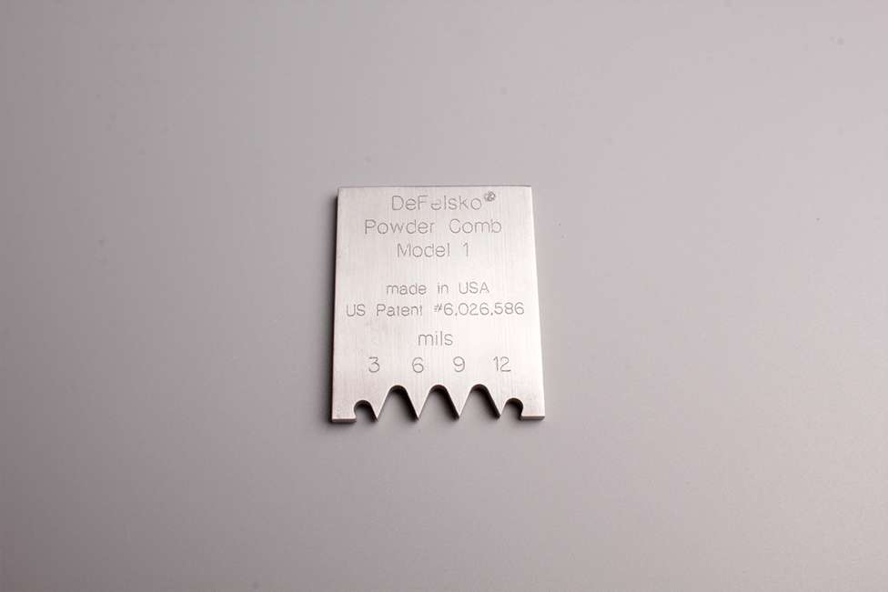 Verifique el espesor de la pintura en polvo con el peine de espesor de polvo DF-PC1 antes del curado para asegurar el espesor de la capa de recubrimiento desde la primera vez desde la linea de producción. Evite el retrabajo con métodos que pueden afectar la adherencia e integridad de la pintura.