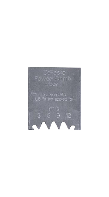 Verifique el espesor de la pintura en polvo con el peine de espesor de polvo DF-PC6 antes del curado para asegurar el espesor de la capa de recubrimiento desde la primera vez en la linea de producción. Evite el retrabajo con métodos que pueden afectar la adherencia e integridad de la pintura.